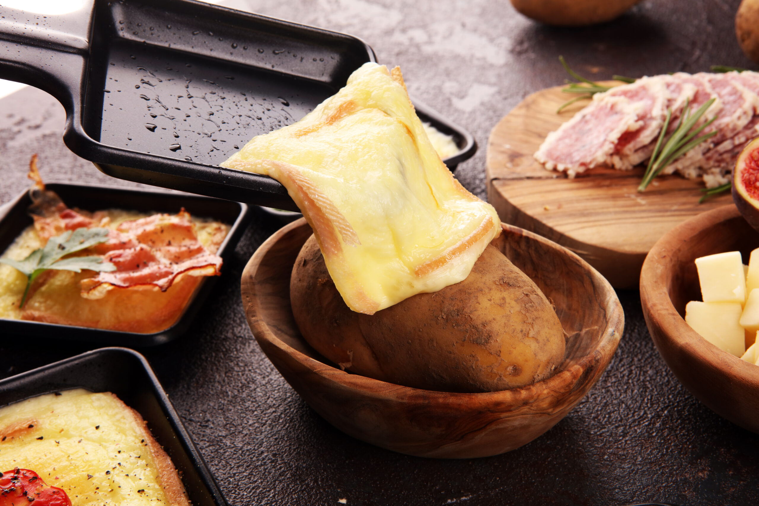 Raclette se peče na namenskem namiznem žaru, kjer si vsak postreže sam in je odlična jed za prijeten zimski večer v družbi prijateljev ali družine.
