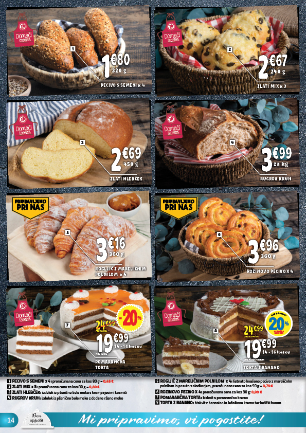 Od hrustljave skorjice do nežnih sladkih pregreh – v naši ponudbi vedno najdete nekaj, kar bo pobožalo vašo dušo in razveselilo vaše najbližje. Vsak grižljaj odraža našo predanost kakovosti in ljubezen do tradicije, ki jo ustvarjamo prav za vas.