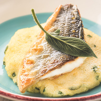 FILE BRANCINA NA KREMNI POLENTI Z OCVRTIM ŽAJBLJEM …
