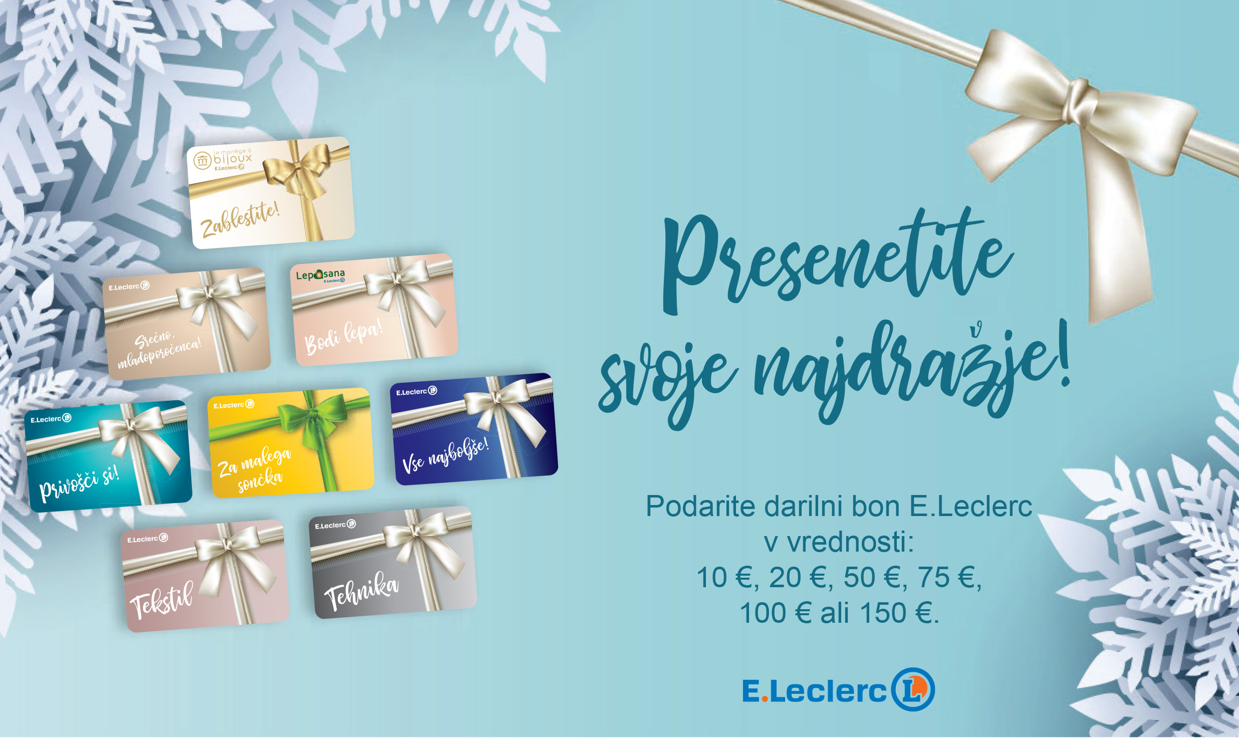 Iščete darilo, pa ne veste kaj podariti? Podarite darilni bon E.Leclerc. Ne le da vam ni potrebno razmišljati, kaj boste podarili, obdarovanec se sam odloči, kaj si bo izbral. Praktično, izvirno in preprosto!
