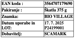 Zaradi nevarnosti sledov tropanskih alkaloidov v izdelku z naslednjo referenco (in samo s to referenco) se umika iz prodaje in izvaja odpoklic izdelka: